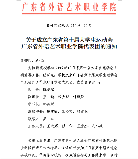 关于成立广东省第十届大学生运动会金鼎娱乐最新官方网址代表团的通知