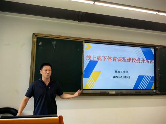 在培训会上,林燕荣深入解读了线上线下课程建设的要求与意义,并结合评审标准,从课程标准的制定、教案与教学实施报告的撰写、录课、线上课程建设的具体步骤等多个维度,进行了全面而细致的分享。武胜奇分享了课程课程《太极拳》建设的过程与体会,布置了体育课程建设的任务,希望教师们能够深入研究、精心思考,不断更新教育理念,积极探索教学方法,努力提升课程建设能力,积极开展精品课程建设。
