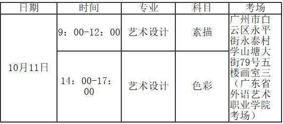 根据广东省招生委员会下发的《关于做好2015年广东省成人高校招生工作的通知》(粤招[2015]18号)精神,我校定于2015年10月11日进行2015年成人高考术科加试工作,请第一志愿报考我校艺术类专业的考生依时到我校安排的考场进行术科加试,具体安排如下: