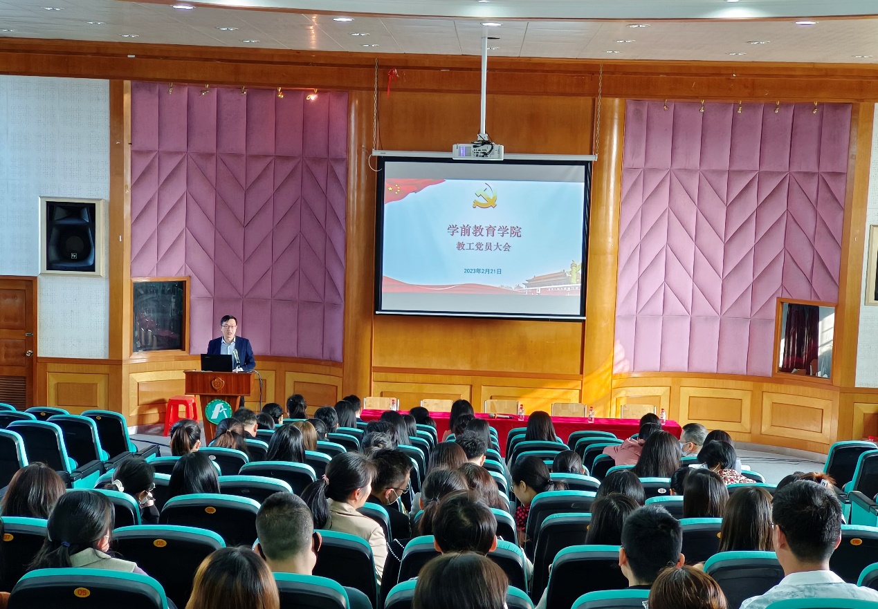 岭南春来早,奋斗正当时。为振奋干事创业的精气神,助力学校“省高”建设,2月21日上午,学前教育学院召开全体教工会议,传达学习全省高质量发展大会精神,布置落实新学期各项工作。会议由学院党委副书记罗光晔主持,学院全体教职工参加了会议。