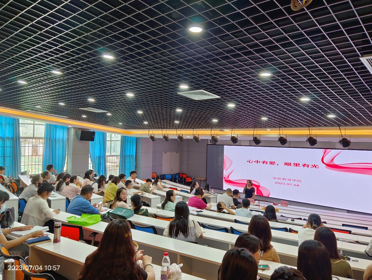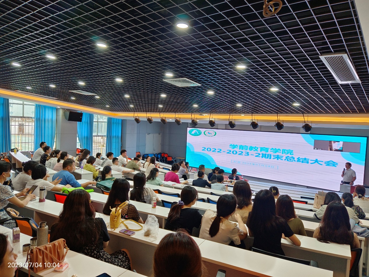 7月4日,学前教育学院在燕岭校区阶梯一课室召开2022-2023学年第二学期期末总结大会,学院全体教职工参加了会议。