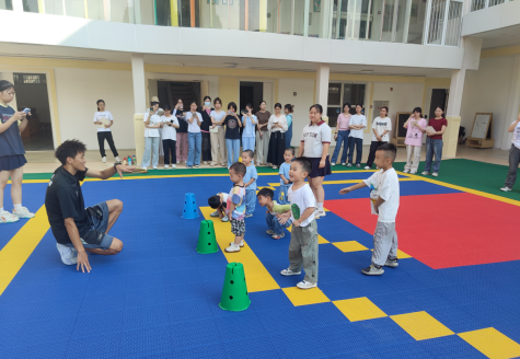 在本次活动中,钟晨焰老师带领同学们观摩了两位一线教师组织的体育游戏,并针对本次活动的组织过程展开了研讨,在研讨与反思中,学生与一线教师更深切地感悟到活动应以儿童为中心,真正践行爱儿童懂儿童。此次教学实践活动是“产教融合双向赋能”系列活动中的第二次实践,活动不仅有利于课程扎根岗位实际,对接行业新要求、新标准,确保课程内容不与实践脱轨,亦有利于推进职前培养、职后培训有机融合的高职课程建设。