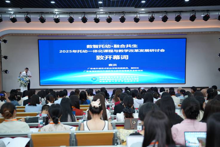 为推动数字化技术与托幼教育的深度融合,积极探索职业院校托幼一 体化课程改革与教学创新的新路径,5 月 10 日,全国学前教育与托育服务 产教融合共同体主办的 2025 年托幼一体化课程与教学改革发展研讨会在 学校燕岭校区召开。学校副校长袁洪出席会议并致辞,193 位学校代表以 及 12 位企业代表齐聚一堂,共商托幼一体化发展的新思路、新策略。