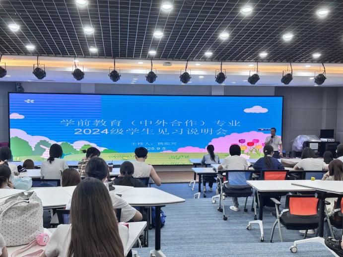 9月5日,学前教育(中外合作)专业在燕岭校区阶梯二举办2024级学生见习说明会。学院副院长颜雪梅、专业带头人杨振兴及优秀学姐代表出席会议,为即将走上见习岗位的新生明确方向、传授经验。