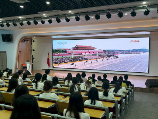9月3日上午,学院组织100名师生在燕岭校区行政楼阶梯三集中收看纪念中国人民抗日战争暨世界反法西斯战争胜利80周年大会暨阅兵式直播。学院师生一同起立高唱国歌。直播结束后,学生们深受触动,纷纷表示立志把爱国情融入未来托幼事业。