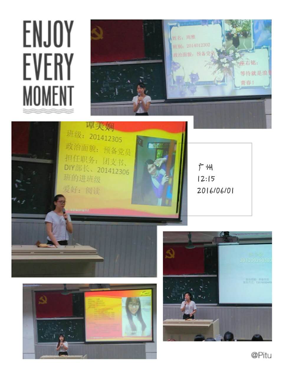 本次会议形式新颖,正在校外实习的毕业班党员专程返校,她们通过一段段精心剪辑的视频为大家分享自己一路成长的心路历程,介绍了她们的思想、学习、生活、以及社会实践经验等,入党积极分子都对争取入党的条件及程序有了更全面直接的认识,并且对自己的人生专精覃思。