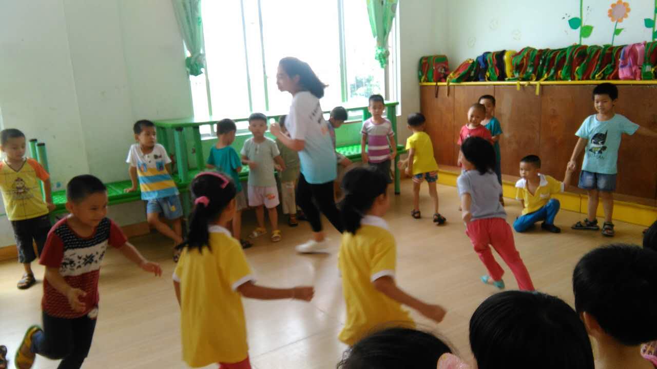 支教第二天,队员们开始融入到班级,大概了解了幼儿园的一日活动流程,与各个班的老师和小朋友们也渐渐熟悉起来。