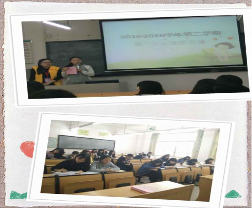我院心理部部长要求各班心理委员密切关注班级同学心理健康动态,每周认真做好全班同学心理健康状况登记表,及时向我院心理健康指导老师汇报工作。对于班里心理健康状况欠佳,尤其是贫困生、家庭特殊和学业成绩不理想的同学,要对其建立个人心理档案,并给予个别情感关注,鼓励他们多参与到班集体活动中,用积极活跃的团体氛围,感染和熏陶他们形成自信、乐观的人生态度,勇敢面对生活中的挫折。