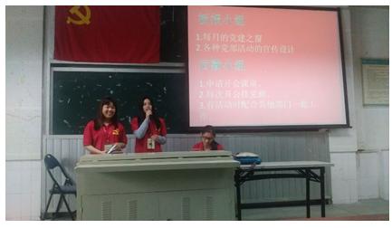 学前系学生党支部现有党员46名,其中正式党员8名,干部12名,管辖374名入党积极分子,分设书记处、组织部、常务部、宣传部和新闻部五大部门。各个部门又下设相应职能小组,如组织部的档案管理小组、答辩小组和进班级党员小组等。动员大会上各部长对相应部门的基本工作进行归纳和小结,并呼吁全体入党积极分子积极向党组织靠拢,积极加入到学生党支部工作团队中来。