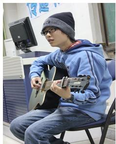 全部展示完毕后,学生代表上台投票。在工作人员统计票数期间,由吉他协会会长蔡玉星同学自弹自唱为大家带来一首《海阔天空》,清脆婉转的歌声掀起全场的高潮。