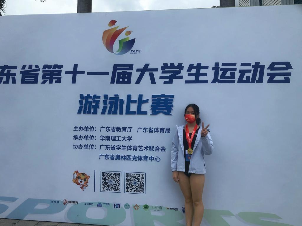 5月26日上午,学前教育学院学前教育专业2020级黄苑怡同学在广东省第十一届大学生运动会中勇夺第一,荣获女子丙组200米蛙泳金牌,这也是我校本届代表团参赛以来夺得的首枚金牌。喜讯传来,师生振奋。小编采访了黄苑怡同学,带大家一起去了解金牌背后的故事。