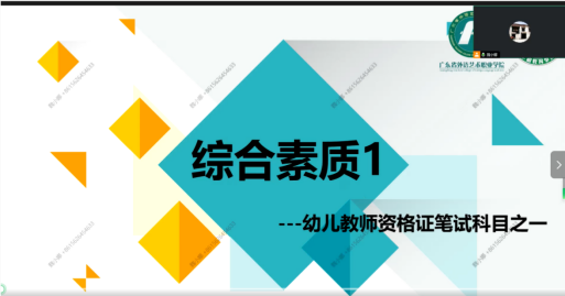 本次辅导包含《保教知识与能力》、《综合素质》两大课程内容,分成九大教学模块。教师们牺牲放假时间精心备课,课件内容图文并茂、以题为例,重视师生互动,帮助同学们更好地理解、掌握知识难点。积极创建线上课程资源方便同学们课后反复学习观看,全方位、多层次地保证了同学们的学习质量。