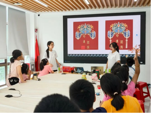 图:孩子们认真了解非遗凤冠工艺
