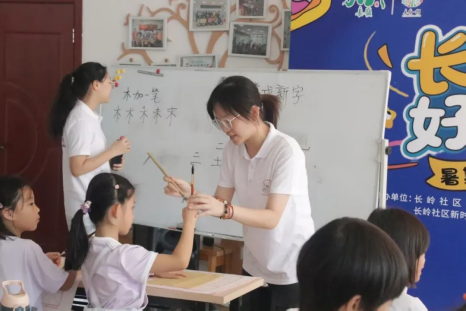 行前,实践队积极与当地社区工作人员沟通,了解其文化事迹,感悟其发展变化;行中,“助学筑梦”实践队发挥特长各司其职,势必要将个人理想融入国家发展伟业,将专业所学服务与实践所需,以实际行动践行“请党放心,强国有我”的青春誓言。