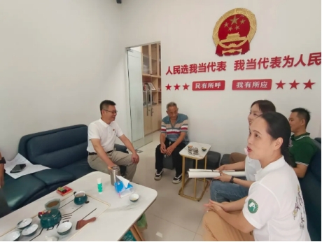 图:指导老师和队员与梅陇镇村委访谈