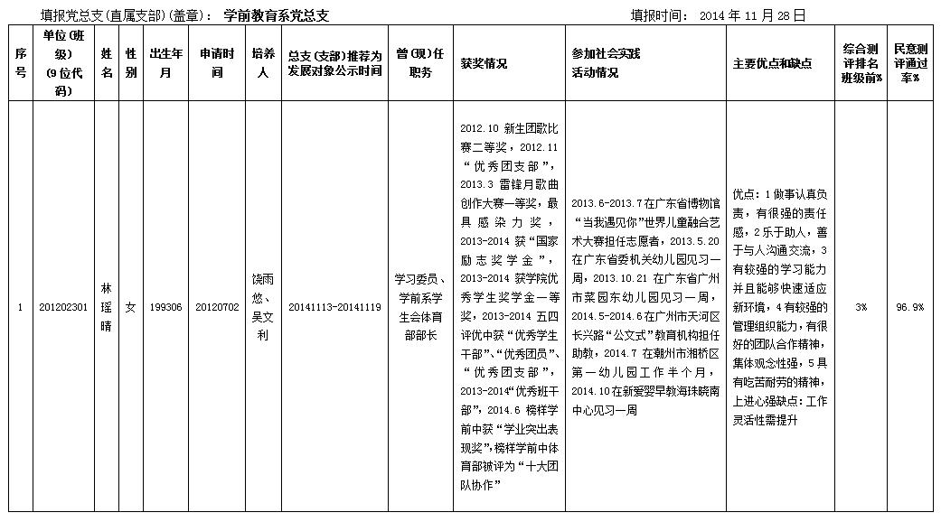 广东外语艺术职业学院党员发展对象基本情况表