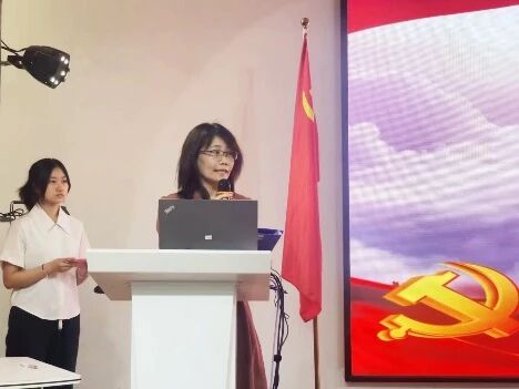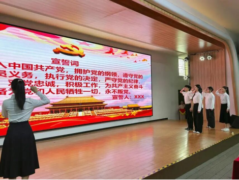 随后,党员代表徐佳燕带领全体新晋党员面向党旗,高举右拳,重温入党誓词。在领誓人的带领下,铿锵誓言响彻会场,“为共产主义奋斗终生”的承诺凝聚着青年党员对党的忠诚与信仰力量,字字句句都彰显出对党的忠诚与坚定信念。