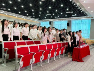 仪式在庄严的国歌声中拉开帷幕,大会第二项议程,党委副书记林琼发表致辞。她向新晋学生党员表示祝贺,并对参与培养工作的教师致以谢意。林琼指出,学生党员挂牌不仅是荣誉的象征,更是责任的担当。她强调:“党员挂牌既是荣誉的加冕,更是责任的镌刻。希望全体学生党员以‘时时叩问初心’的自觉,将理想信念融入行动,在学习中争当表率,在实践中勇担使命,为学院发展注入红色动能。”