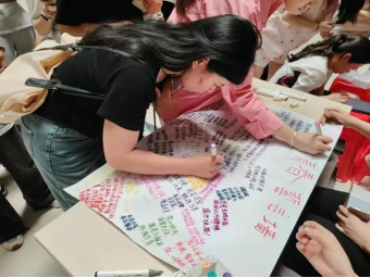 “青春誓言够燃吗?等你来秀!”摊位前,同学们纷纷执笔,将对党和祖国的深情祝福化作一句句铿锵有力的青春誓言,书写在青春誓言墙上,这不仅展现了青年学子坚定的理想信念,更凝聚起他们为党和国家事业奋斗的决心与力量。