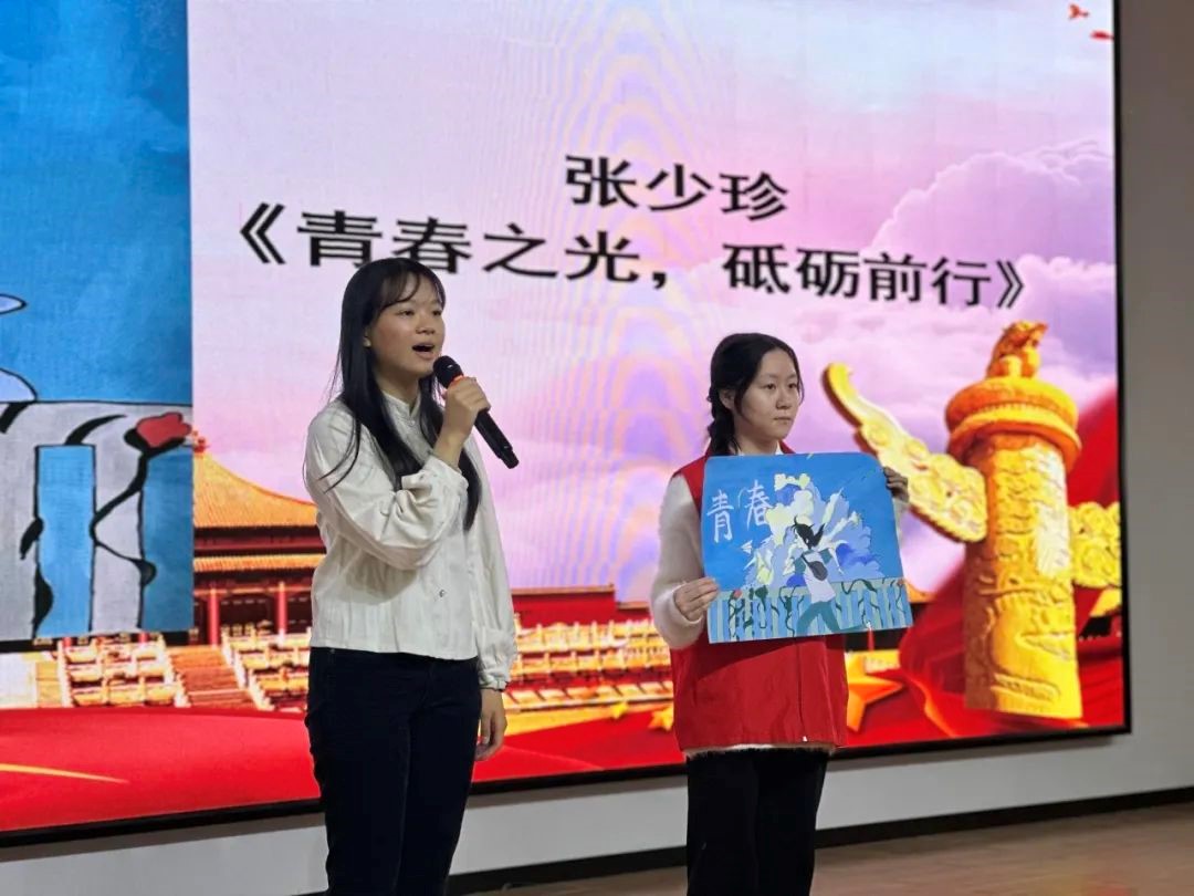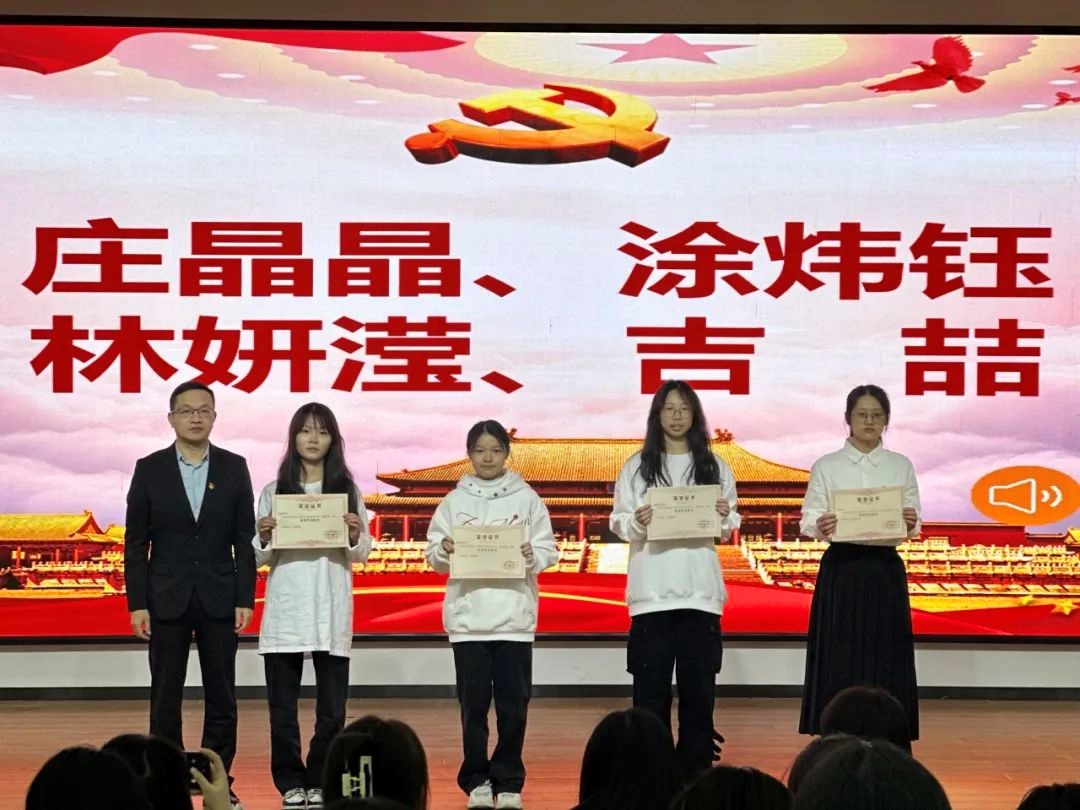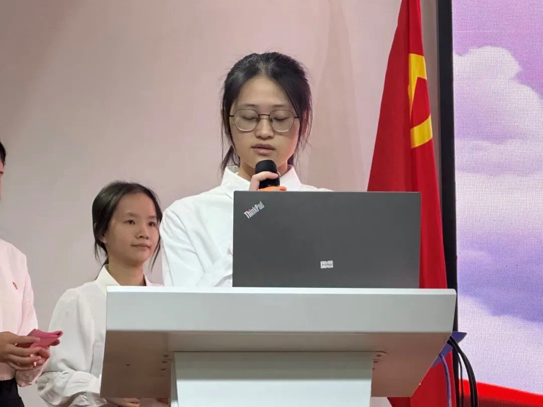 紧接着,由入党积极分子代表庄晶晶同学上台发言。她在发言中分享了自己在党课学习中的深刻体会与收获,表达了对党的忠诚以及为党的事业奉献的决心,立志在今后的道路上,时刻以党员标准要求自己,坚守初心,勇担使命,为实现中华民族伟大复兴贡献力量,不断学习,争取早日成为一名合格的共产党员。