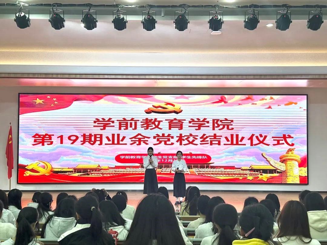 在学前教育学院第19期业余党校培训中,共有77名入党积极分子顺利结业。希望各位入党积极分子们不断提升政治素养,将此次培训中学到的新理论、新思想、新知识转化为实际行动,做到学思用贯通、知信行统一,紧跟党的步伐,用热血书写无愧于时代的壮丽篇章!