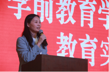 随后,学前教研室主任黄美贤作实习任务及要求说明,并结合了自己的亲身经历提出了几点要求:一是强调保护工作的重要性,二是强调言行的慎重,学会换位思考和沟通。她将此次教育实习的机会和对同学们的嘱托凝练成了“新环境、新角色、新开始,多观察、多换位、多行动”,并为此展开详尽的阐述。最后她祝愿全体毕业生们实习顺利,学有所成。