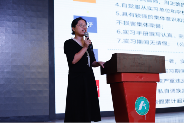 实践教研室主任魏小娜围绕“教育实习成绩评定制度,教育实习请假制度及教育实习资料填写”三个方面进行具体阐述。她总结了以往学长学姐们的实习经验并对2025届毕业生们表达出了深深的祝福,希望同学们能以此次教育实习机会契机,认真准备实习前的各项工作,以扎实的专业知识迎接实习挑战,为个人未来发展奠定基础。