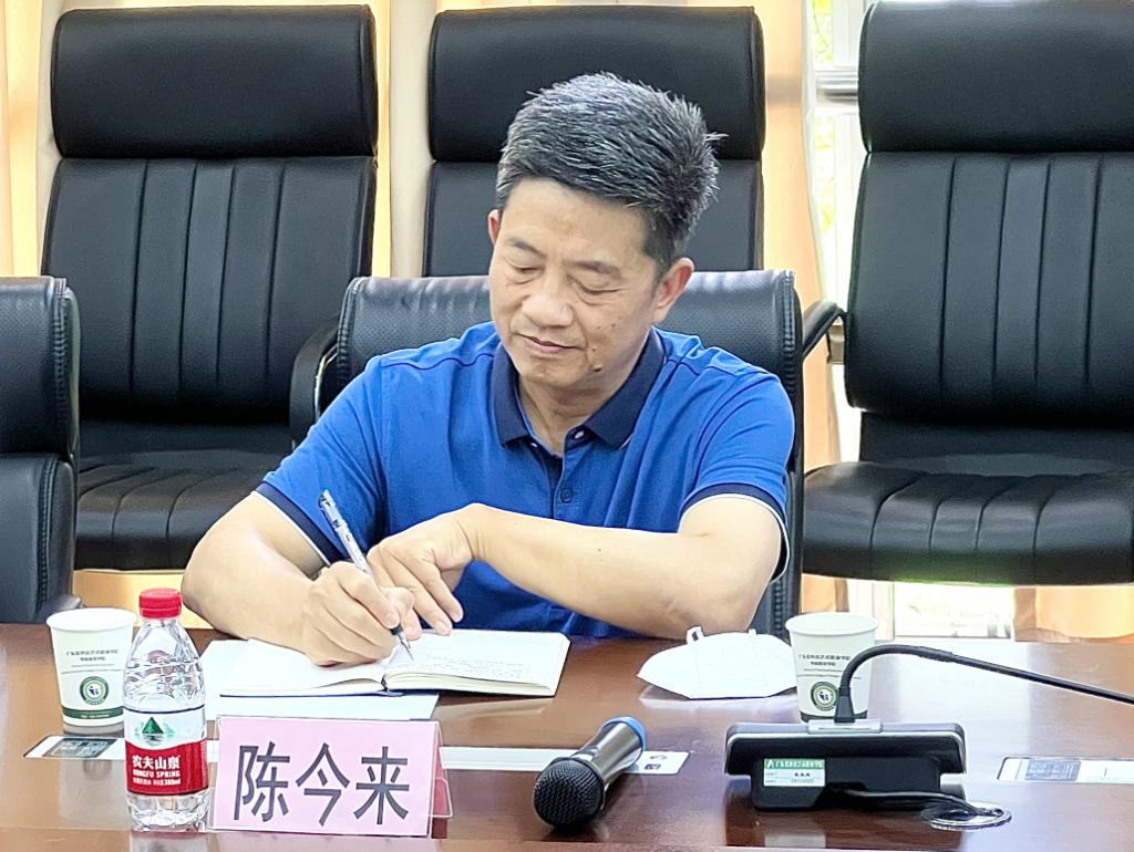 图:陈今来认真听取学生的情况汇报