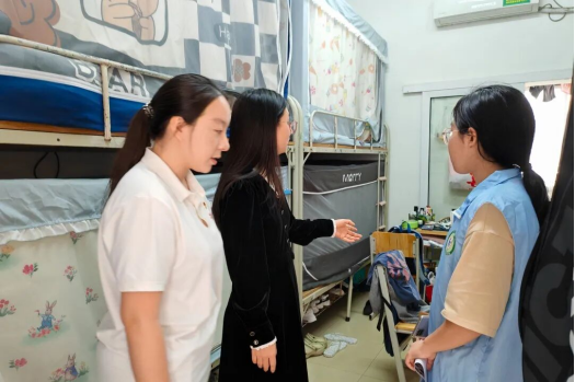 检查过程中,老师们与同学们展开亲切交流,强调宿舍是“第二家庭”,需共同维护其整洁与安全。结合春季流行病高发特点,老师们特别叮嘱学生注意个人卫生习惯,做到“每日一小扫、每周一大扫”,保持开窗通风,及时清理生活垃圾。