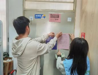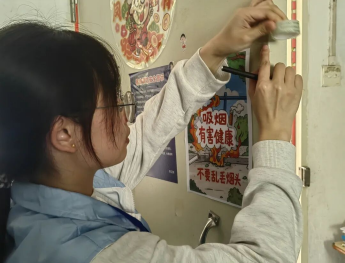 与此同时,服务队成员身着统一队服,逐层张贴禁烟宣传海报,加强对学生的警示教育作用。