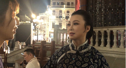 当晚恰逢广东潮剧院承办的“戏亭印象”——小公园有约惠民演出暨“我为群众办实事·政务服务惠万家”活动专场在小公园中山纪念亭举行。夜晚的小公园灯光璀璨,歌声嘹亮。在小亭子后台,团队有幸采访到第二十三届中国戏剧梅花奖得主、国家一级演员、广东潮剧院一团主要演员、现任广东省戏剧家协会副主席、广东潮剧院副院长、一团团长张怡凰。
