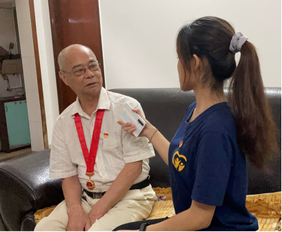 随后,我们采访了李爷爷的儿子李洪同志。李洪在今年被评选为汕头市优秀共产党员,他从入党以后就跟随组织去了很多个红色基地进行学习,并在贫困地区进行工作与学习。李洪向大家介绍自己加入中国共产党的初心,是为了全心全意为人民服务和勇于担当、艰苦朴素、甘于牺牲的精神。李洪认为,对于汕头本地红色文化的建设需要在保护好现有的红色文化的前提下,挖掘出当地鲜为人知的其他红色文化,将被岁月风沙掩盖的瑰宝再次推向大众,传承汕头市的红色文化并将其发扬光大。最后李洪表示,年轻人们要学习前辈们勇于奉献自我的精神,当代新青年要有活力、有智慧,一定要把红色基因世世代代传承下去。