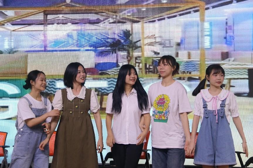 大赛共分为三个环节。第一个环节是“展风貌——宿舍风采展示答辩”。6支参赛宿舍队伍精神饱满,热情洋溢,声情并茂地向大家展示了宿舍集体生活的团结友爱和丰富多彩,宿舍是同学们温馨的港湾,大家一起制定宿舍公约,共同打扫宿舍,建设好宿舍小家,共同成长进步。聚是一团火,散是满天星,在集体力量的影响下,宿舍成员相互激励,彼此帮扶,在学业成长、社会实践、志愿服务活动中发光发热,在各自擅长领域荣获了不少荣誉,展现了广外艺学子团结向上,挺膺担当精神风貌。