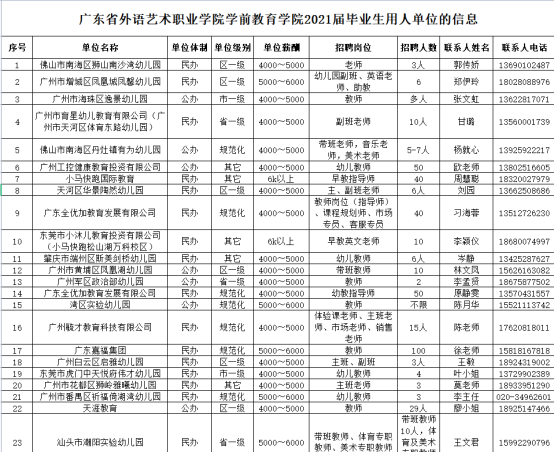 金鼎娱乐最新官方网址学前教育学院2021届毕业生用人单位的信息