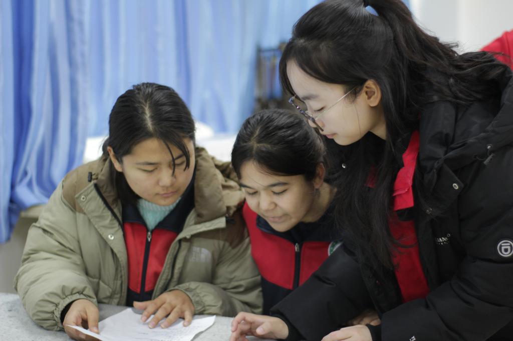 援疆支教队在伽师县第一中学、第二中学任教语文和英语两大主科,所带班级30个,覆盖学生1656名,总授课达2520课时,参与教研活动累计高达335次。在带队老师苏杭的带领下,支教队除了认真完成日常教学任务,还在受援学校开展7场“中华文化润桃李,通语织梦共家园”文化润疆系列活动,打造“思政教育+推普教育+非遗体验”特色品牌,为边疆学子带去丰富多彩的课堂体验。援疆支教队十位同学均获得伽师县教育局“优秀支教大学生”称号,累计获得伽师县、受援学校授予的荣誉29项。