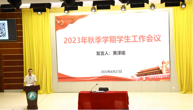 为做好新学期学生返校及教育管理服务工作,8月27日,学校在五山行政楼学术报告厅召开2023年秋季学期学生工作会议暨学工人员培训会。学校党委副书记黄泽瑜出席会议并部署新学期学生教育管理服务工作。学生工作部、校团委负责人,各二级学院和中职教育部党委(党总支)书记、副书记和辅导员,学生工作部全体工作人员参加了本次会议。