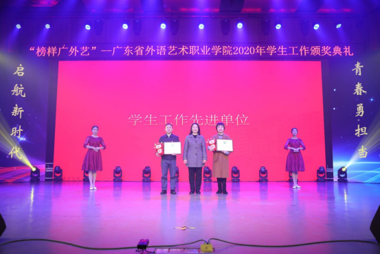 为发挥榜样引领作用,弘扬校园正气。12月21日晚,2020年“榜样广外艺”学生工作颁奖典礼在五山校区艺体中心音乐厅举行。学校党政领导、集团办学三校区领导、相关职能部门负责人、各二级学院党总支书记、副书记、全体辅导员、班主任(德育导师)代表、“情义广外艺”优秀企(事)业单位代表和学生代表出席了颁奖典礼,共同见证荣耀时刻。