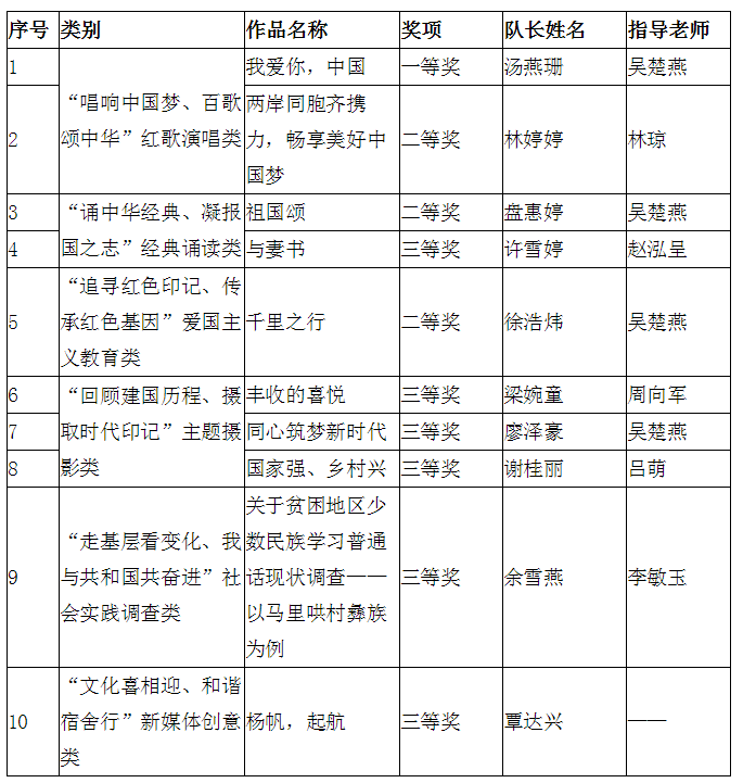 表:我校在2019年省教育厅主题教育系列活动获奖情况列表