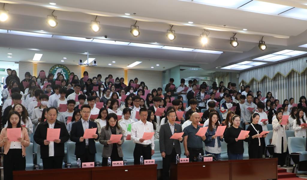为深入学习贯彻党的二十大、党的二十届三中全会和全国教育大会精神,加强宪法法治教育,12月4日上午,我校在五山校区学术报告厅设立分会场举办“宪法晨读”活动。学校党委副书记黄泽瑜、学生工作部负责人、辅导员及学生代表、学生工作部相关人员通过网络连线教育部全国青少年普法网,同步参与教育部在北京主会场开展的第十一个国家宪法日“宪法晨读”活动。