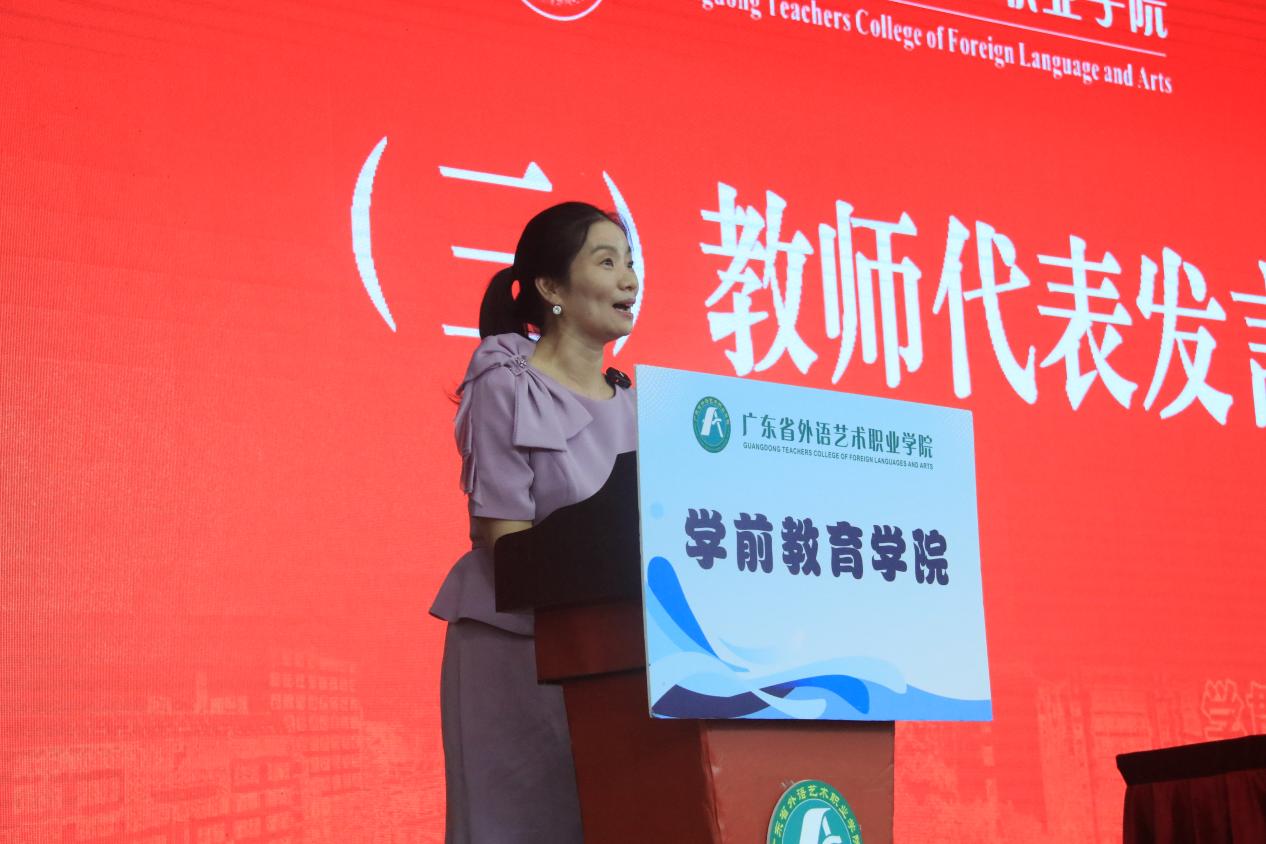 教师代表结合专业特色为新生送上成长锦囊。民政服务与管理学院教师代表陈诚惠以“广州市幸福社区评估专家”的专业身份传递行业认知;基础教育学院石蓬老师、学前教育学院谢琼老师则聚焦实践能力培养,鼓励同学们勤学善思、知行合一,在专业学习与社会实践中成长成才。