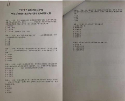 在正式学习之前,学院心理站站长张举正和副站长黄娉婷根据学习的文件精心设计了测试题,测试题将文件中最重要的内容以问题的形式展现,带着问题学习的方式有效地提升了学习的成效。