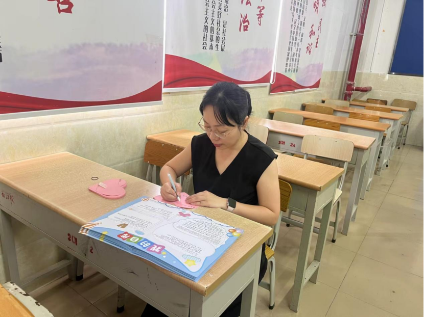 班会课后,班主任利用课余休息时间,打开一封封新生们的自传,仔细地阅读,了解学生的成长历程与所思所想,为学生的真情流露而感动。老师们奋笔疾书,给每一个同学一一回信,在由心理中心精心设计的心形卡片上,将自己的关切之情、殷切期望和美好祝福传递给学生。