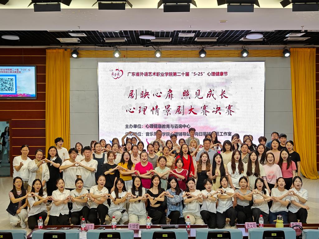 2025年5月20日下午,由心理健康教育与咨询中心主办,音乐舞蹈学院心理辅导站、向日葵辅导员工作室承办的第二十届心理健康节 “剧映心扉,照见成长” 心理情景剧决赛在五山校区九楼学术报告厅成功举办。演艺学院书记郑玄弘、副书记陈栋以及学生工作部副部长蒋文明出席了活动,心理健康教育与咨询中心主任朱婵媚,演艺学院李爱平、数字创意学院武倩、心理健康教育与咨询中心李恩端、李倩瑜、刘国萍老师担任评委老师,此外还有150名师生代表莅临了现场。