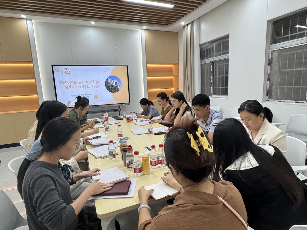 11月10日下午,我校心理健康教育与咨询中心在五山校区一站式学生社区党团活动中心召开2025-2026学年第一学期期中心理副站长工作会议,心理中心全体成员、各学院心理辅导站副站长参加会议。