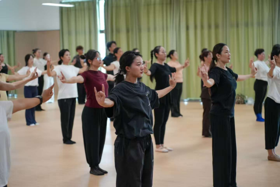 第一段“守护”,为教学基础,聚焦于传统傩舞的身体复刻,训练核心在于仪式感的建立与传统身体语汇的掌握。以傩舞特有的手位、手型与静态造型为核心训练元素。将代表性角色的手势寓意如驱、挡、请、祈,通过“低桩磐姿”、“拧倾探身”等典型舞姿,塑造傩舞雄浑、狞厉、朴拙的原始力量感与神秘仪式感,使学生在身体记忆中内化傩舞作为民间祭祀活动的文化基因,完成对传统根脉的“守护”与传承。