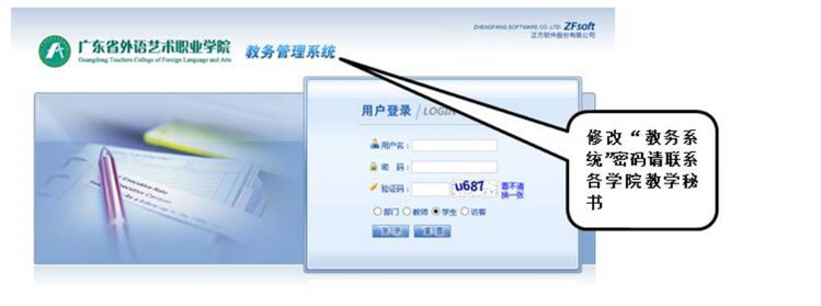 (三)学生的用户名及初始密码均为本人学号,必须修改初始化密码后才能进行选课。如登陆密码遗失,请联系所在学院教学秘书进行密码初始化处理。