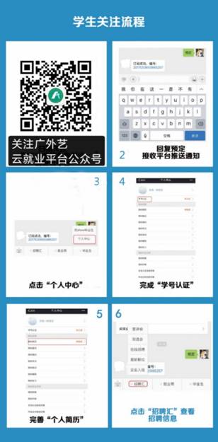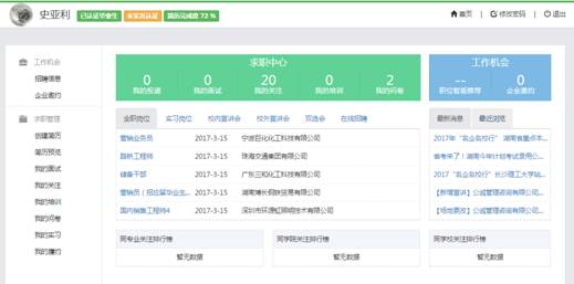 我的关注:学生关注的宣讲会和双选会可在此处查看,并且会在招聘会的前一天早上收到系 统提醒;