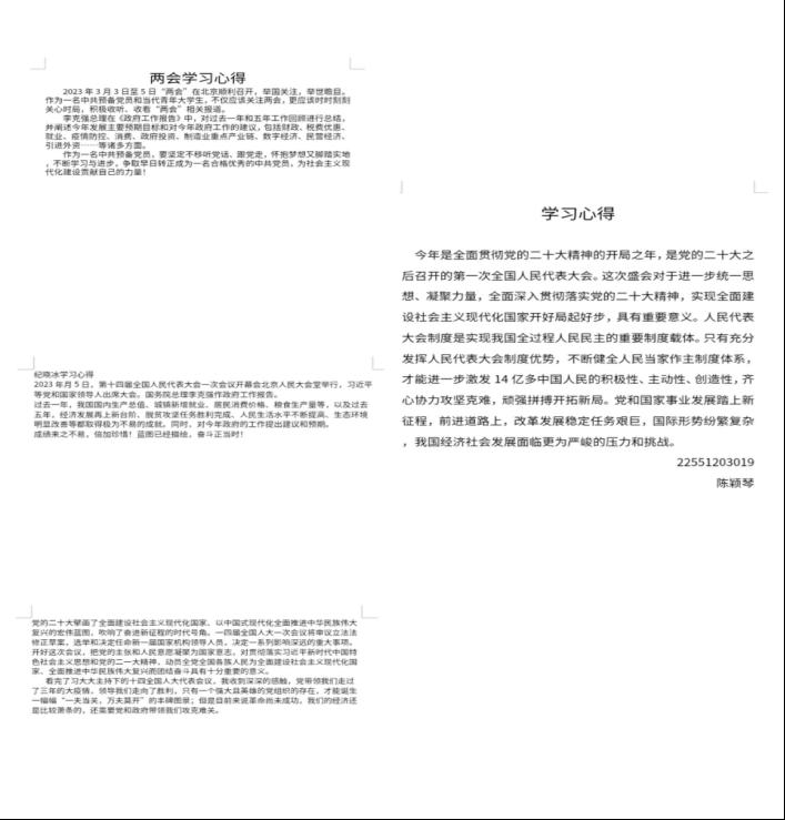 在这个充满希望与温暖的季节里,2023年全国两会如期召开。全国人大代表、政协委员齐聚北京,共商国是,为中国新时代社会主义建设建言献策。作为一名在校大学生,看到代表们各抒己见,憧憬着祖国发展的美好未来,心中涌起浓浓的国家自豪感。我们应当清楚的意识到,祖国发展取得来之不易的成就,离不开每个人的努力,我们当代青年也绝不能成为旁观者,而是要不断发奋学习,提升自我,贡献己力,为国争光。