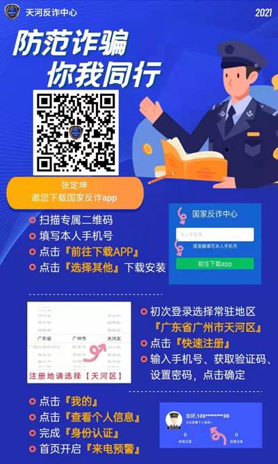 1.下载APP:学生扫描图片(附件)二维码下载国家反诈APP,注册完善个人信息,并开启来电预警功能。