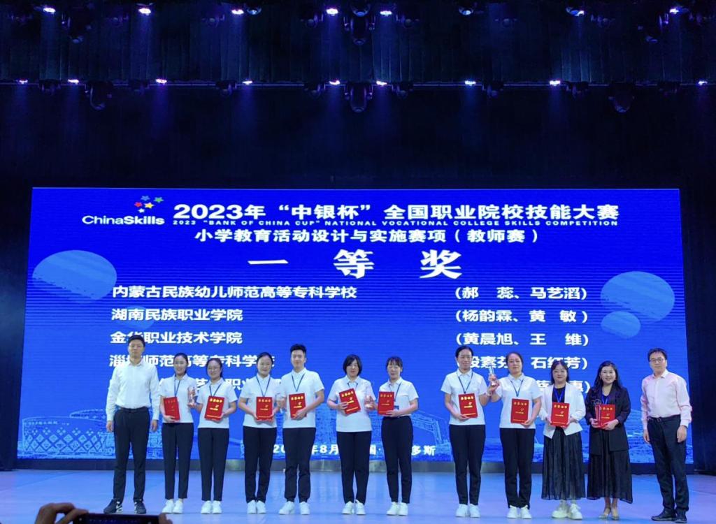 8月23——26日,2023年“中银杯”全国职业院校技能大赛小学教育活动设计与实施赛项(教师赛)在内蒙古民族幼儿师范高等专科学校隆重举行,来自全国25个省市自治区的45支参赛队的90名选手在此切磋技艺,展示风采。本次大赛由教育部、国家发展和改革委员会、科学技术部、内蒙古自治区人民政府等30多个部委和事业组织联合主办,内蒙古自治区教育厅和鄂尔多斯市人民政府承办。